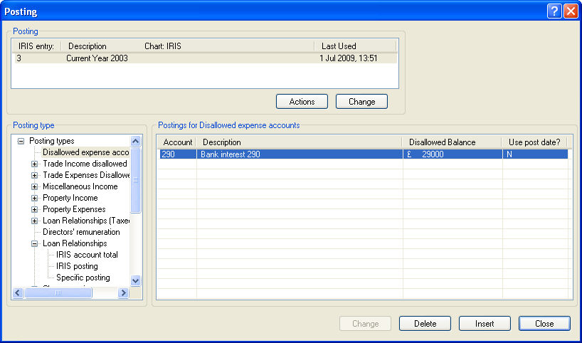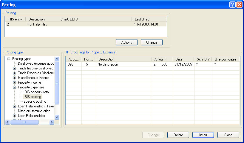 Click on the + next to Property expenses, highlight IRIS posting and click on Insert.