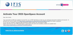 - Client activation email - You will receive an email entitled IRIS OpenSpace Client Registration. To activate your account, click on the link in the email and create a password (see screen shot below):