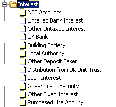 Most of the income taxed at the savings rate is located in the interest section on the income menu. The following income, entered elsewhere is also taxed at the savings rate: