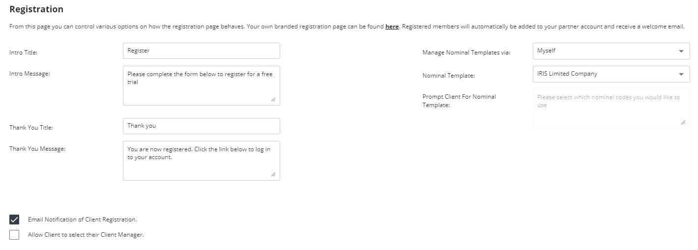 From this page, you can control various options on how the registration page behaves.
