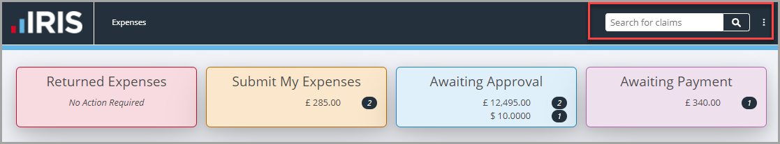 If you are unable to find a claim in a particular panel or are unsure of the claim status, you can search for the claim in IRIS Expenses.