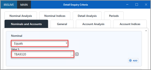 3. Select ... in Value 1, then select the applicable Prepayment nominal from the Select a nominal dialog.