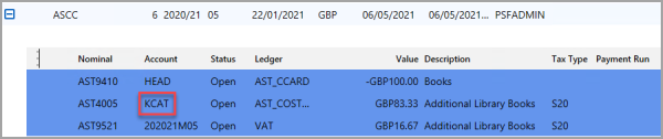 If a user changes the Account to something else, for example, KCAT, it overwrites the original account and does not reverse the detail line.