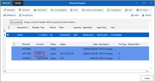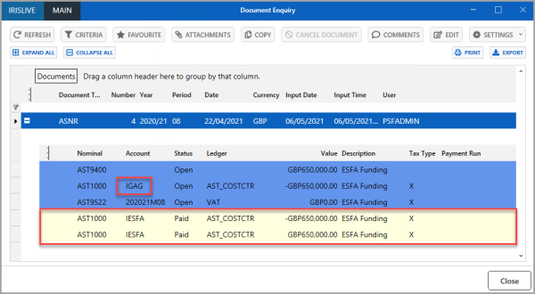 For example: ASNR 3 has been posted to the IESFA Account in error.