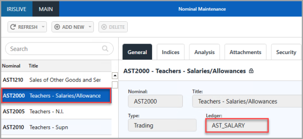 2 - Make a note of the Ledger linked to the nominal.