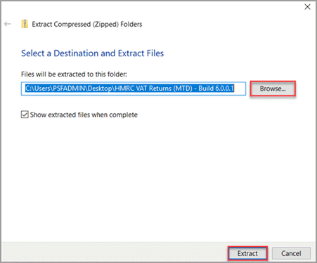 Copy the HMRC VAT Returns (MTD) zip folder onto the SQL Server which hosts PS Accounting.