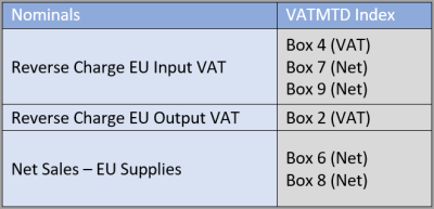 These nominals should be used for the relevant transactions in order for them to appear in the correct boxes in the VAT return.