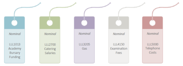 The Chart of Accounts is a complete list of financial codes (nominals) that provide a way of categorising income and expenses into logical groups, similar to the principle of labelling. When an establishment / organisation spends or receives money, it needs to be classified, such as money spend on stationery, income from trips, or bank interest, etc. The nominal identifies what is being spent or received.