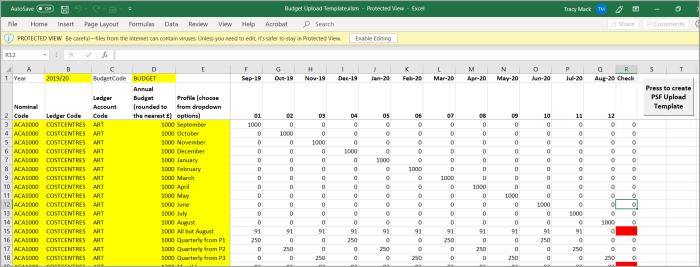 Draft budgets are often worked on internally using spreadsheets. Once agreed, this data can then be easily copied into the Budget Import Template spreadsheet.