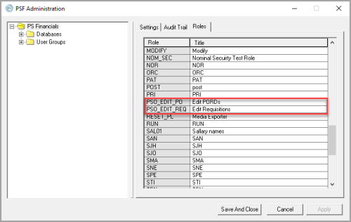 4. Find PSO_EDIT_REQ and PSO_EDIT_PO in the Role column.