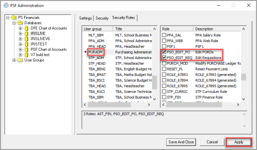In order to provide access to this functionality, two security roles must be assigned to existing IRIS Financials Purchasing users.