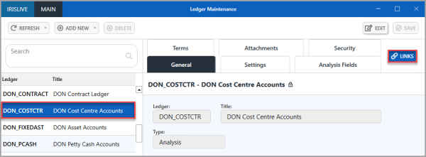 4. Select the ledger that is linked to the nominal, for example, DON_COSTCTR.