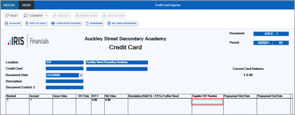This typically occurs on documents that are not posted to the supplier accounts, such as credit cards, debit cards, and petty cash. All of these document input forms contain a Supplier VAT Number column. If this is not completed when the document is entered, it does not pull through to the VAT 126 report.