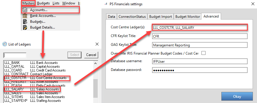 In ,IRIS Financials accounts are stored on Ledgers. The Cost Centre Ledger(s) field determines which accounts will sync with IRIS Financial Planner as cost centres. You can enter multiple ledgers separated by commas.