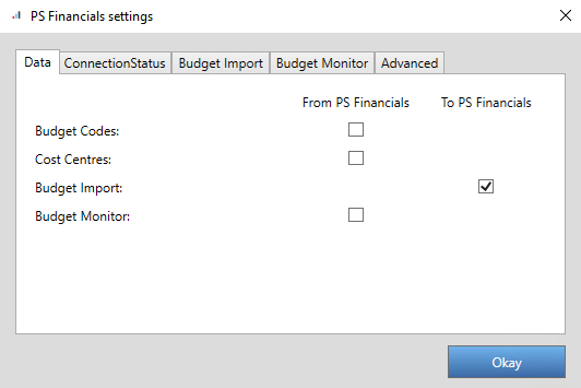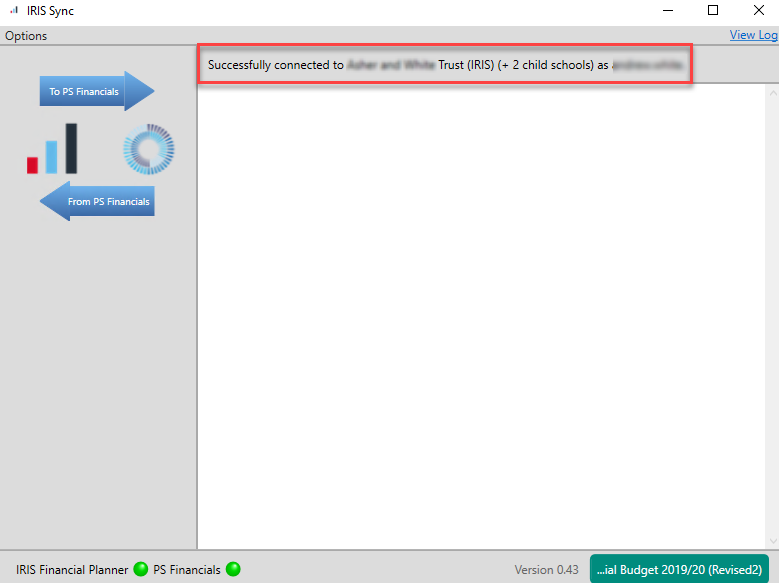 - Select Options > PS Financials settings from the top menu in IRIS Sync.
