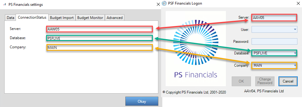 | Server | Server your IRIS Financials database is stored. You can find this on your PS Accounting login window |