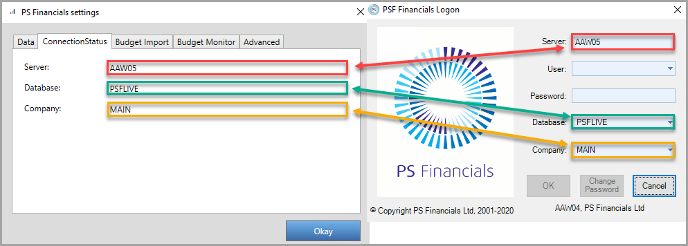 If the IRIS Financials icon is still amber, the issue may be the Database username and Database password on the Advanced tab.