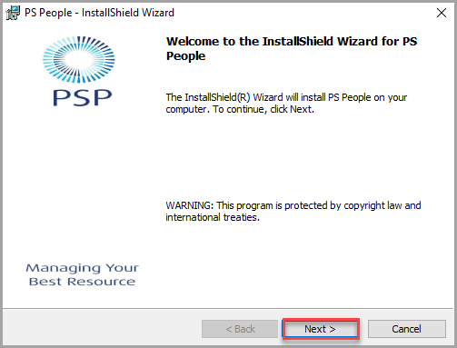 The PS People- InstallShield Wizard is displayed. Select Next.