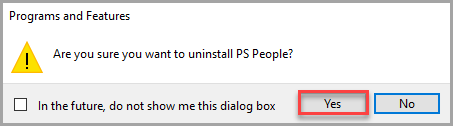 Use the scroll bar to find and select PS People, then select Uninstall.