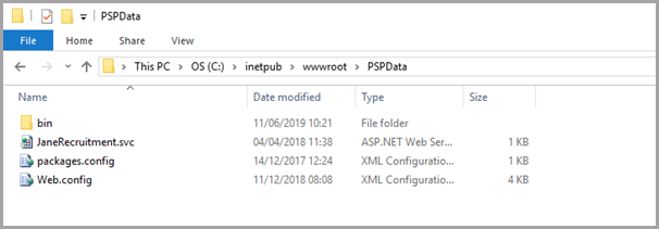 Create a new folder and name it Backup. Copy the JaneRecruitment.svc, packages.config, Web.config and Bin files and folder into the new folder to create a backup.