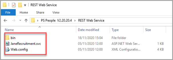 Navigate to the new PS People version installation folder you installed and open the REST Web Service folder. Copy the following: