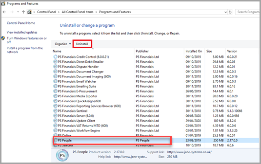 Uninstall your Existing Version of PS People