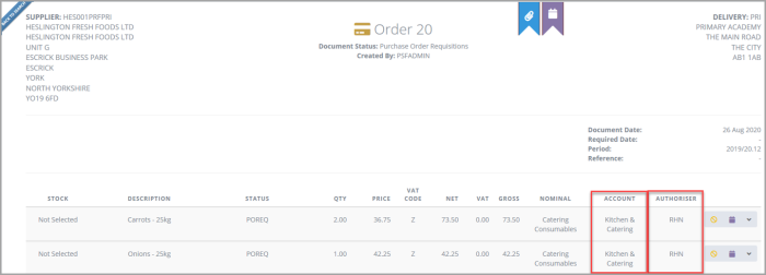 If this is the case, you can change the authoriser on the cost centre, or other applicable ledger, and repoll the document to send the order to a new approver for authorisation.
