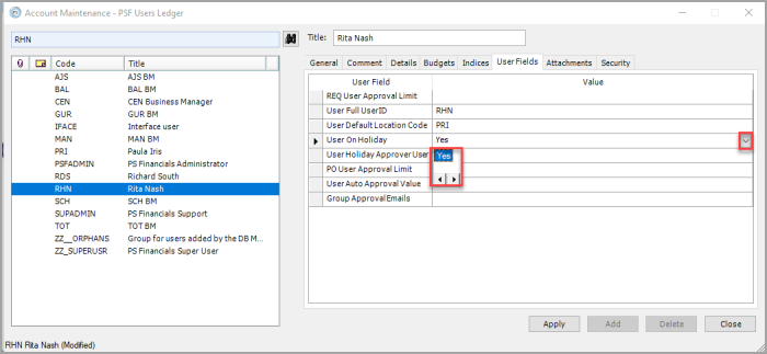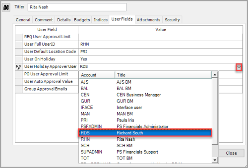 Select the new approver from the left-hand panel, then select the User Fields tab.
