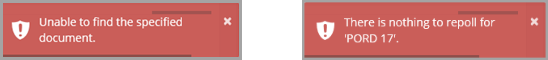 If the document number is incorrect or there is nothing to repoll, one of the following messages is displayed. This usually indicates the document has already been authorised or the document does not exist.