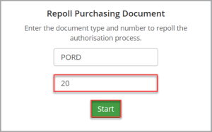 Purchasing documents are resent for authorisation using a function called repolling. This function can only be carried out by a user who is a member of the CUSTADMIN user group.