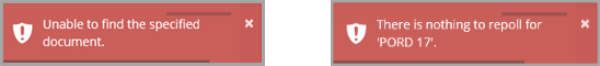 If the document number is incorrect or there is nothing to repoll, one of the following messages is displayed. This usually indicates the document has already been authorised or the document does not exist.