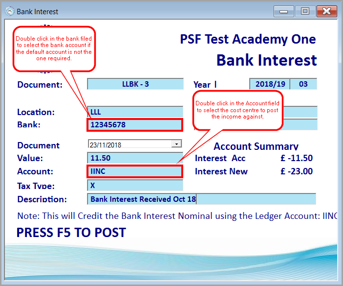 Posting Bank Interest Received