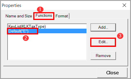 3. Click on the Functions tab, then click on the Default line and then the Edit button.