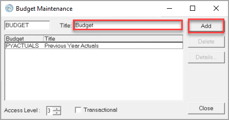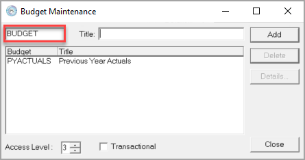 - By default, the Access Level for a budget is set to 3. If you want to restrict access to the budget, you can increase this as required.