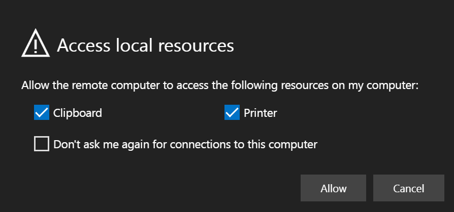 You cannot access the clipboard (you can still cut and paste plain text) or local printers, even if these check boxes are selected.