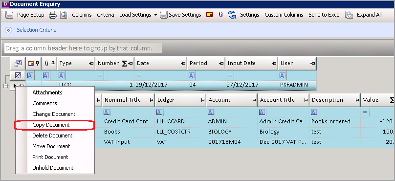 1. To do this, display the credit card expense in a Document Enquiry window.