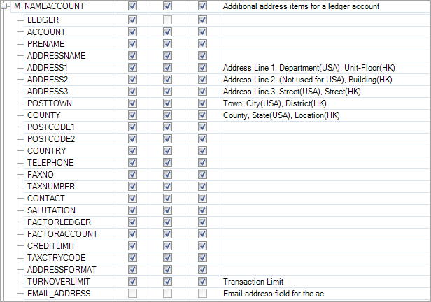 M_NAMEACCOUNT - Holds all of the contact information held against the account e.g. address.