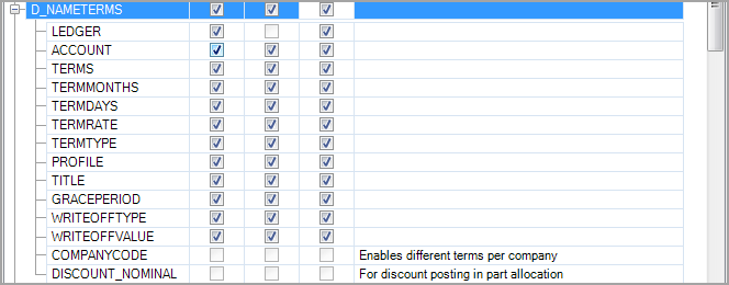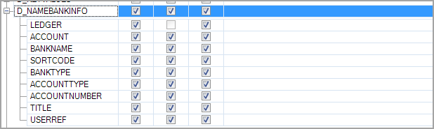 D_NAMEBANKINFO - Holds all of the bank account information on the system, by expanding the table name out you can select which details from the table are audited.