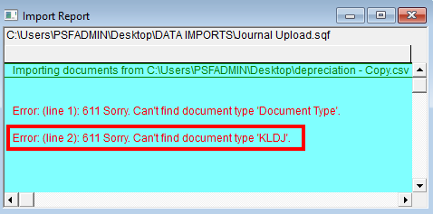 3. The code for depreciation should be on the ledger. In our example it is DEP and not DEP01 as is specified in the import file.