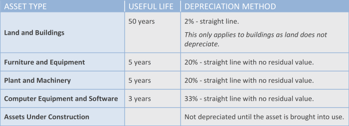 Depreciation rules are usually approved by your establishment/organisation in agreement with financial advisors at the beginning of the financial year and may be similar to the following: