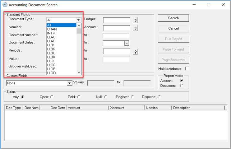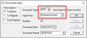 When entering data, you will need to select the required document type which then limits the input forms available. This ensures that the correct input forms are available for the required purpose.