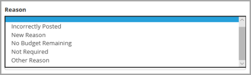 - Select the reasons the item or document is being cancelled from the drop-down list.