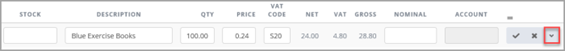 When you have finished adding the item information, click the Tick icon to validate the line.
