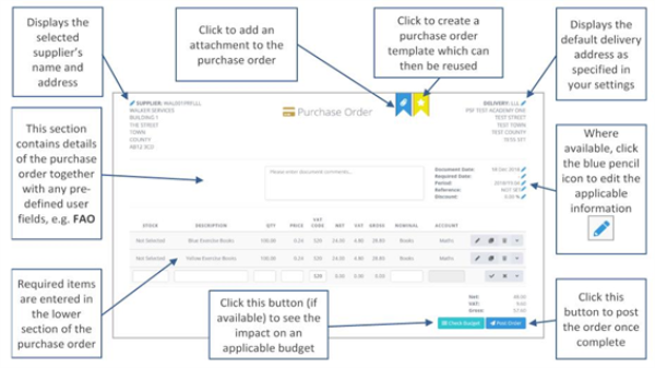 - The details from the authorised requisition are then progressed to the purchase order, as shown in the following graphic.