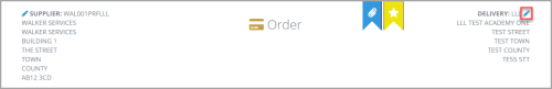 - The delivery address is carried through from the requisition but can be amended by clicking the Edit (blue pencil) icon, then clicking the required address from the Select Your Delivery Address window.