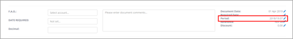 If you have amended the Period or Document Date in the document details section of the purchase order, check the Period in the item line addition information section. Changing the Period in the document details section does not update the Period in the additional infomation section, as you may want the item posted to a different accounting period.