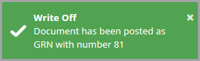 A goods received note (GRN) is automatically generated for the items that have been written off.