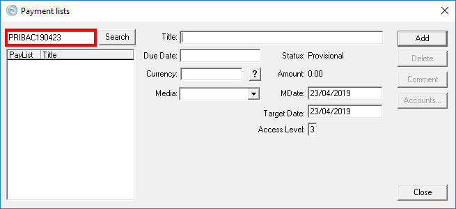 To avoid errors when uploading the payment list to the bank, do not enter any special characters in Title.