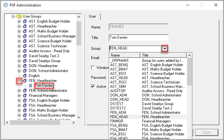 There may be circumstances where a user changes role within the establishment/organisation and consequently needs different access to the system. This is achieved by changing the user group to which the user belongs.