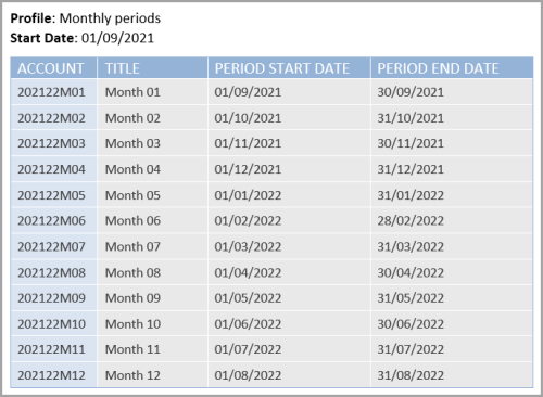 - Once the required settings have been applied, select Next. The Confirmation page is displayed showing a preview of the VAT periods that are about to be created. Review the information to check the format is the same as your existing VAT periods and select Back to make any amendments. Otherwise select Finish to create the VAT periods.